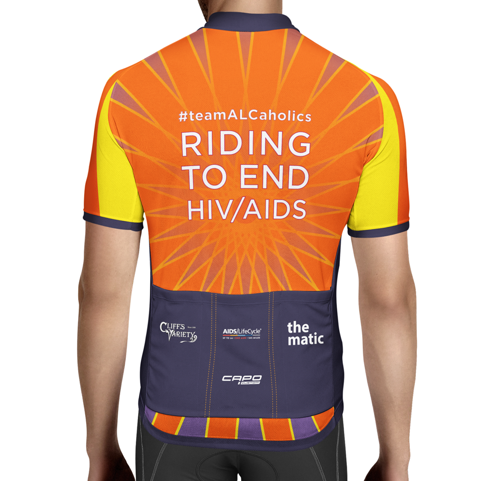 I designed a kit for Team ALCaholics for the 2018 Aids/Lifecycle Ride. This is a 7 day fundraising event where over 2500 people bike from San Francisco to Los Angeles to raise awareness about HIV/AIDS and to help San Francisco AIDS Foundation and the Los Angeles LGBT Center with their yearly programming.